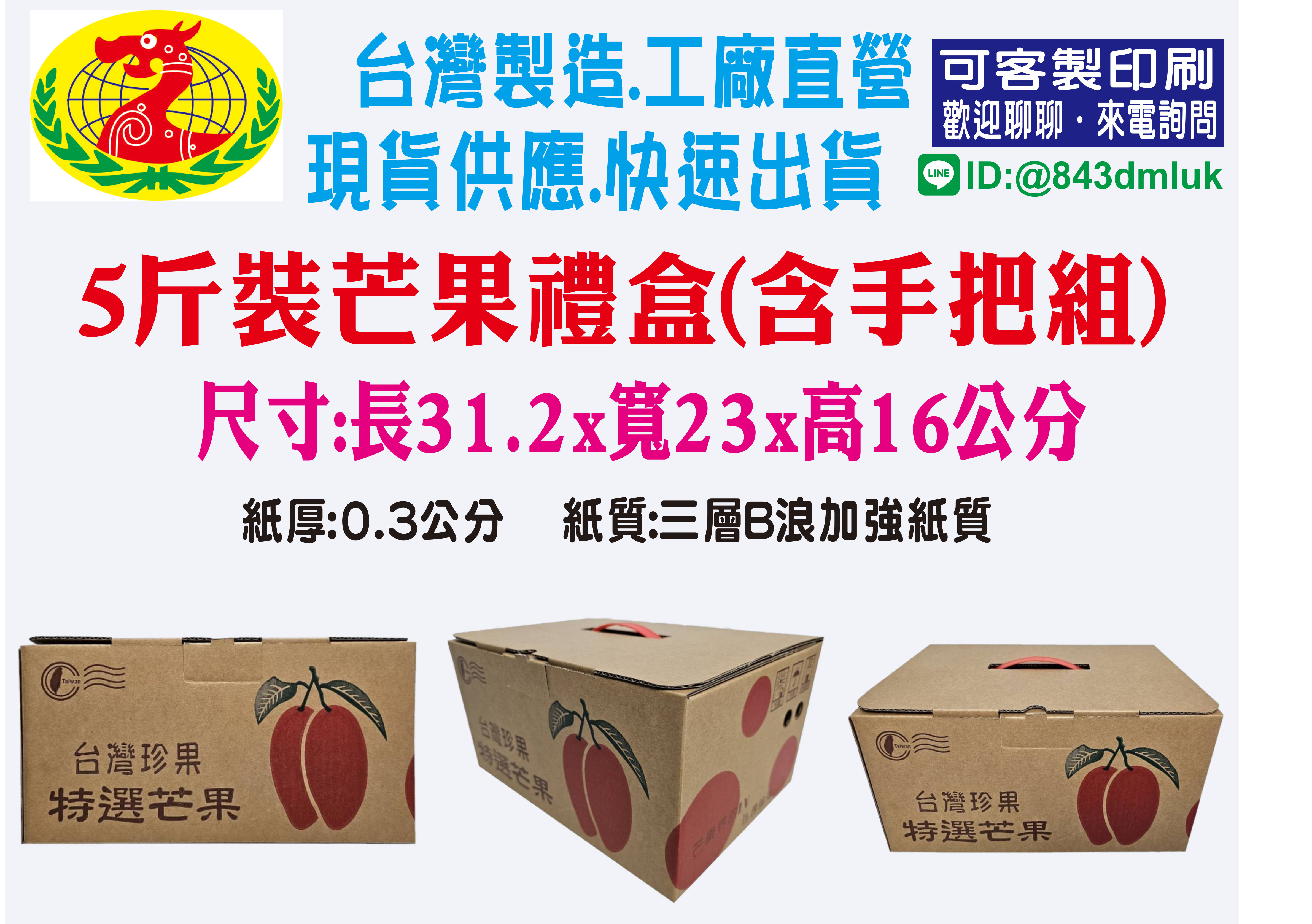 | 5-4 5斤芒果手提式禮盒(含配件組) | 31.2X23X16CM | 29.8X22.8X15.5CM | 72CM | $26 | 1綑10只 | $260 |