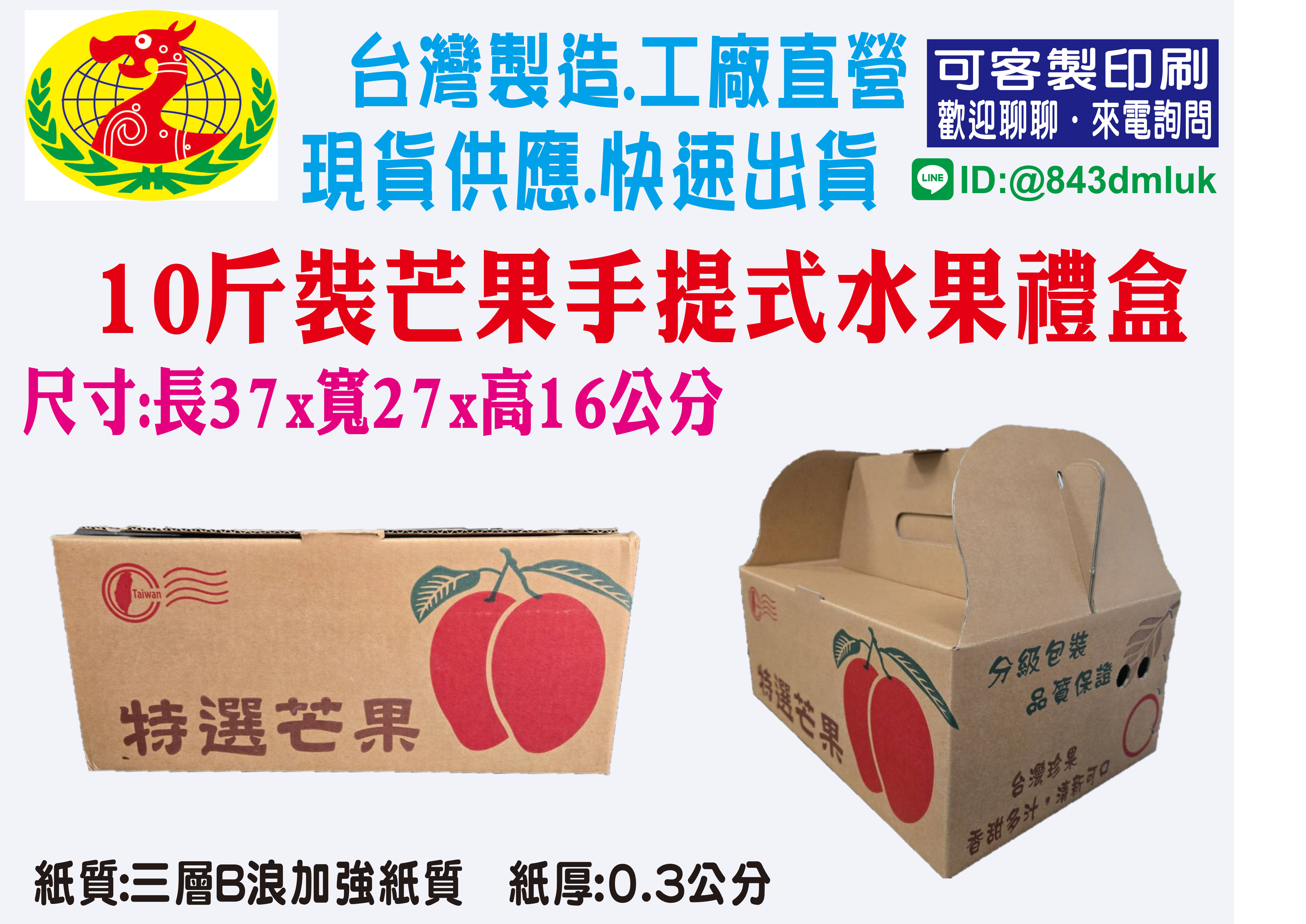 | 水10芒-10斤裝印刷芒果手提式禮盒 | 37X27X16公分 | 36.7X26.7X15.5公分 | 80公分 | $27 | 1綑10只 | $270 |